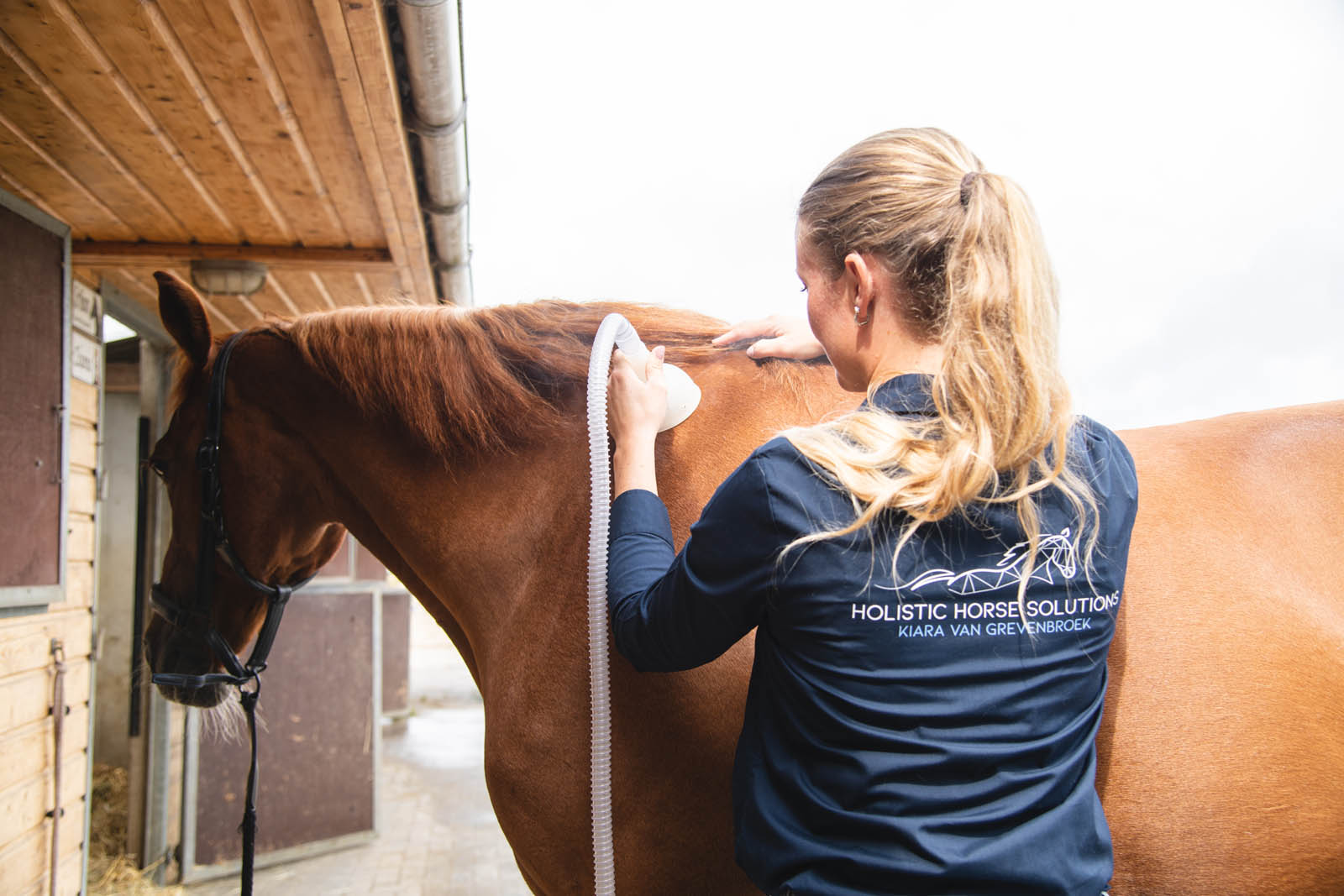 Kiara van de Grevenbroek works with a holistic perspective on the recovery and well-being of horses. She treats both sport horses and leisure horses that have lost their balance due to injuries, overstrain, or stress.